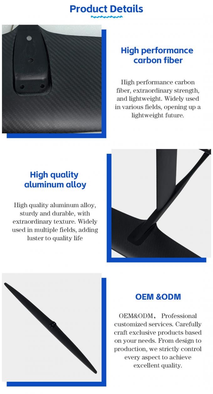 The New Surf Foil GY-HP ART 1401 is built with high-performance carbon fiber at its core, especially the carbon fiber mast, which uses high-modulus carbon fiber composite material and is formed through a special process. Compared to traditional materials, it is approximately 35% lighter, yet possesses stronger tensile and bending resistance, easily withstanding the impact of water currents during high-speed gliding and the external force of external pressure under complex wave conditions, providing a solid foundation for the stable operation of the hydrofoil.