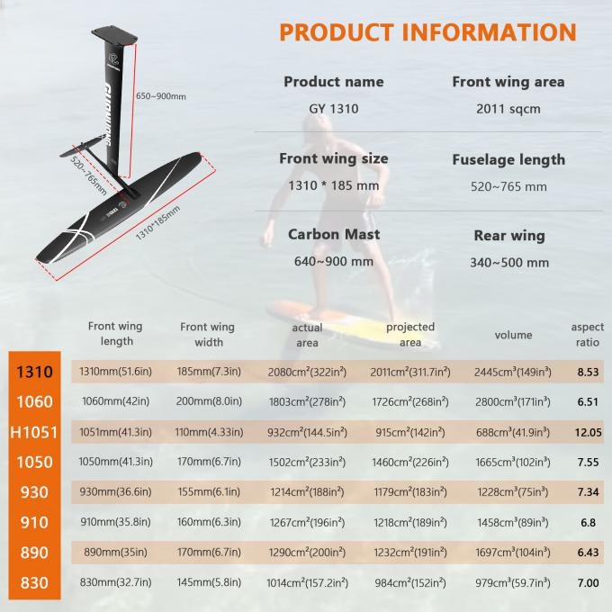 The Popular GY1310 Hydrofoil is a water sports equipment focused on the needs of beginners, emphasizing three core selling points: "easy to learn, stable control, and high safety." Addressing the concerns of beginners regarding balance and control, its overall design revolves around "lowering the entry barrier." Whether you"re new to hydrofoil surfing, wingfoil, or want to try pumping fly, you can quickly adapt and easily experience the fun of "floating on water." It"s an ideal transitional piece between basic water sports and advanced hydrofoil activities.