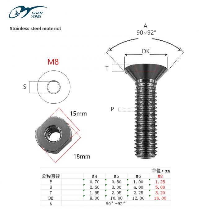 "M" represents metric specifications: M6 has a diameter of 6mm and a thread pitch of 1.0mm, commonly using a 12.9 strength rating; M8 has a diameter of 8mm and a thread pitch of 1.25mm, mostly using an 8.8 strength rating. Both meet the requirements of water sports and are compatible with boards and hydrofoil mounting systems of different thicknesses.