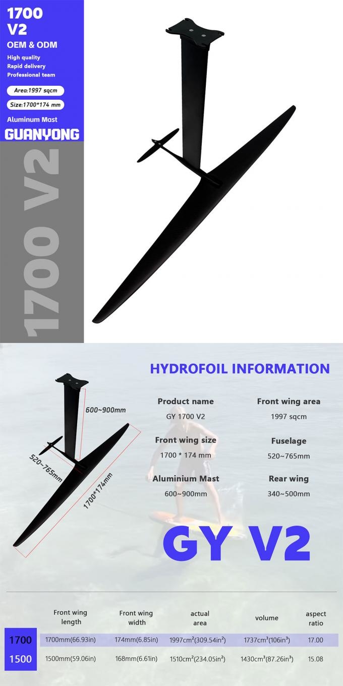 2025 New Style Large Front Wing 1700 V2 High Performance Carbon Fiber Beginners Foil Water Sport Wingfoil Hydrofoil Pumping