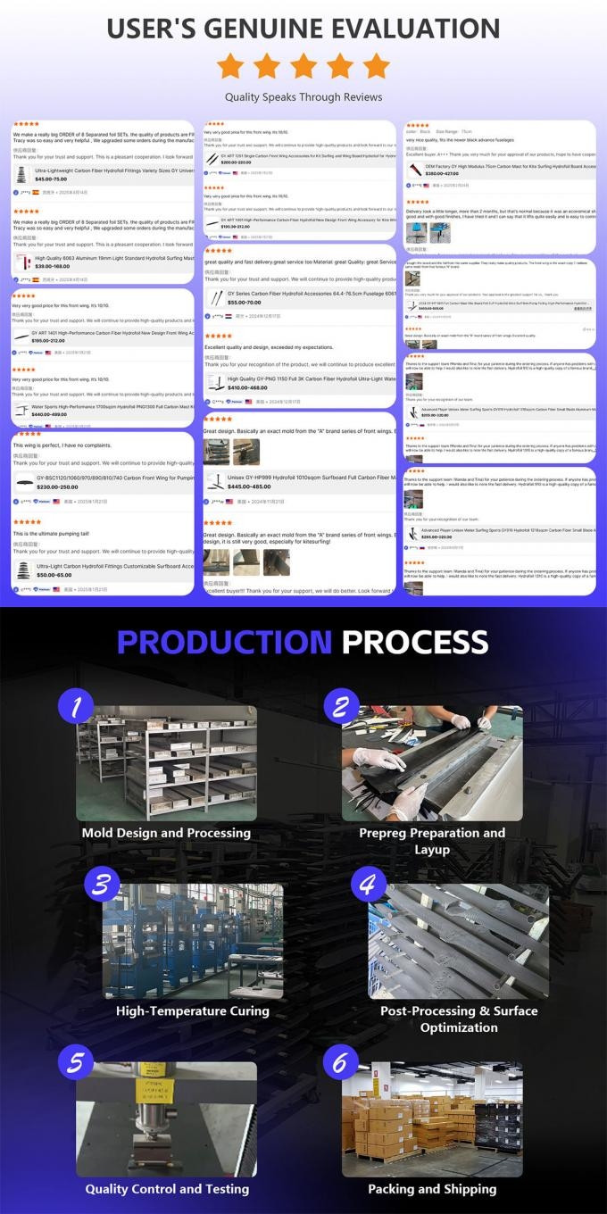 The hydrofoil, a core component, is made of high-performance carbon fiber. Its lightweight nature reduces physical exertion, making it less tiring for beginners during extended practice sessions. The high rigidity of the material ensures the airfoil remains undeformed under high-speed water flow, ensuring precise control commands. Furthermore, carbon fiber"s excellent corrosion resistance and fatigue resistance make it perfectly suited for marine environments, requiring minimal maintenance and balancing durability with low operating costs.